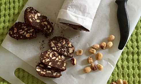 - Ricoprite il salame di cioccolato fondente con il cacao amaro e richiudetelo nella carta forno