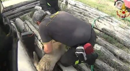 Cane salvato dopo esser rimasto incastrato sotto pali Enel