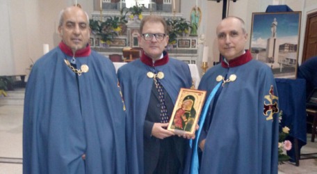 Calorosa è risultata l’accoglienza tributata, nella splendida Chiesa Madre di San Ferdinando Re, dai fedeli sanferdinandesi alla Delegazione Costantiniana, rappresentata per l’occasione dai Cavalieri Giovanni Surace, Rocco Gatto e Pasqualino Guerrisi. A quest’ultimo, al termine della Santa Messa officiata da Don Antonino Massara, è stata consegnata una pregevole icona della “Madonna con Bambino”, opera dell’iconografo Paolo Federico, realizzata in memoria della signora Rosaria Biondo, madre dello stesso Cav. Guerrisi e attiva componente della Comunità Parrocchiale, prematuramente scomparsa un anno fa.
