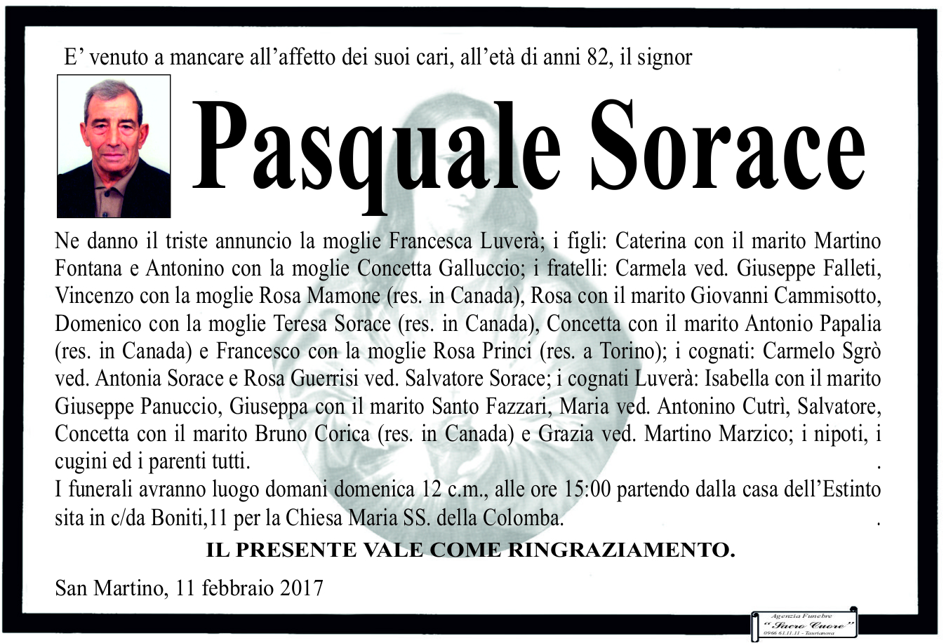San Martino, è morto Pasquale Sorace