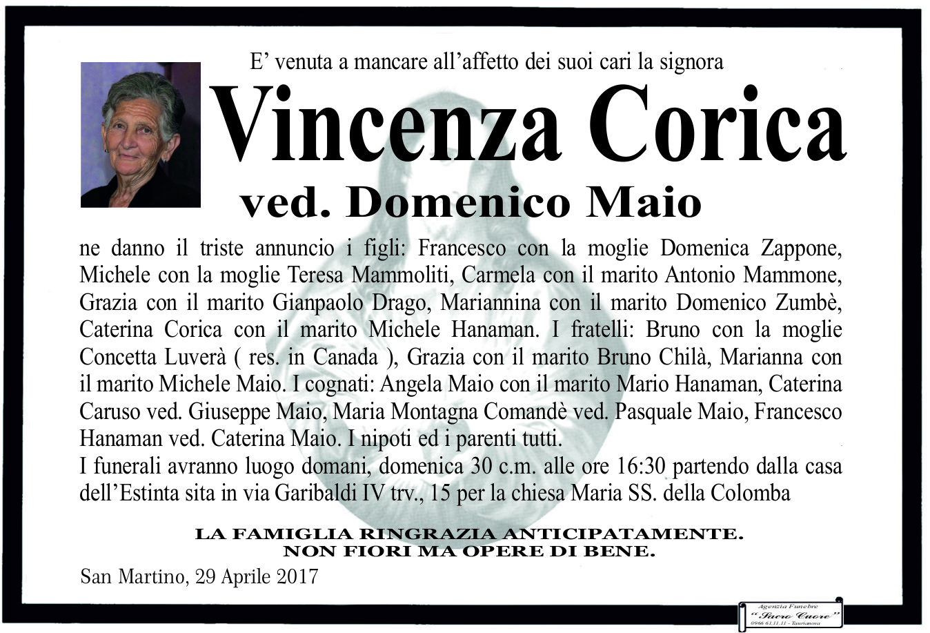 San Martino, si è spenta Vincenza Corica