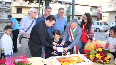 Alla suggestiva cerimonia, voluta dall’Amministrazione Comunale e da tutta la cittadinanza, è stato presente anche il Sindaco Giuseppe Zampogna, accompagnato dal Vice-Sindaco Giuseppe Tarsitani, dall’assessore Annunziato Palumbo e dalla Consigliera Maria Pezzimenti, presente anche il Parroco Don Fortunato Sciglitano. Il Sindaco nel portare il saluto dell’Amministrazione comunale, ha consegnando una targa ricordo della Civica Amministrazione ed un omaggio floreale: “Questa bella festa è stato un sincero e dovuto – ha dichiarato Zampogna – segno di profondo rispetto per la nostra nonnina, come tutti la consideriamo, un attestato di stima nei confronti di una persona che rappresenta una preziosa testimonianza di fatti ed accadimenti che si sono susseguiti in questo secolo”. A seguire il taglio della torta, il brindisi augurale ed un omaggio floreale, offerti dall’Amministrazione Comunale a cui hanno partecipato tutti i cittadini Scidesi.