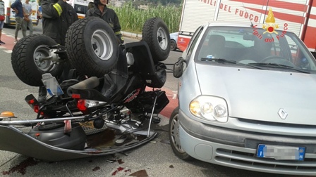 Uno scontro tra una vettura Renault Clio ed un Quad si è verificato in via Via Arturo Perugini, nel Comune di Lamezia Terme. Il quad, a seguito dell’impatto, si è ribaltato ed il conducente, rimasto incastrato sotto il mezzo, ha riportato gravi ferite al viso. L’intervento dei Vigili del Fuoco del distaccamento di Lamezia Terme è valso a liberare la persona incastrata che è stata subito presa in consegna dal personale Suem 118 per le cure del caso ed il successivo trasporto presso una struttura ospedaliera. Sul posto proseguono gli accertamenti da parte della Polizia Locale per ricostruire la dinamica.