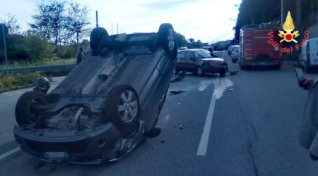 È di sette feriti, fortunatamente non gravi, il bilancio di un incidente stradale avvenuto sulla S.P. 146 nel comune di Chiaravalle Centrale. Due le vetture coinvolte, una Renault Clio e una Nissan Micra, con quest’ultima che, a seguito dell’impatto, si è ribaltata sulla sede stradale. Sette complessivamente i passeggeri nelle due autovetture che, ricevuto le cure dal personale sanitario del Suem 118, sono stati trasferiti con due ambulanze presso struttura ospedaliera per ulteriori accertamenti e controlli. Sul posto è intervenuta una squadra dei Vigili del Fuoco del Comando di Catanzaro, distaccamento di Chiaravalle Centrale, per la messa in sicurezza delle vetture in attesa del soccorso stradale. Presenti i Carabinieri del Comando compagnia di Soverato per accertamenti sulla dinamica dell’incidente.