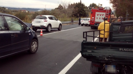 Una squadra dei Vigili del Fuoco della centrale Catanzaro è intervenuta in località Siano per un incidente stradale sulla S.P. 17 al km 1. Coinvolti un’Ape Piaggio ed una Volkswagen Up. L’autista del motocarro Ape è stato trasportato dal personale Suem118 presso una struttura ospedaliera, ma fortunatamente non riportava ferite gravi. La ragazza della vettura illesa. Sul posto la Polizia Locale per accertamenti circa la dinamica dell’incidente. Disagi per la circolazione.