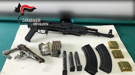 Nel pomeriggio di ieri, i Carabinieri della Stazione di San Calogero, nella quotidiana opera di controllo del territorio della giurisdizione, hanno espletato una perquisizione locale nei confronti di V.R. di 72 anni. Nei giorni precedenti i militari avevano notato nell’uomo un’insolita agitazione nel corso dei controlli espletati nella zona di sua residenza. Per tale ragione, i Carabinieri hanno condotto dei controlli nell’abitazione di residenza e in un manufatto adiacente che in passato era stato di proprietà del V.R. Ed è stata proprio in quest’ultimo edificio – adibito a magazzino – che le rilevazioni dei Carabinieri si sono rivelate corrette. Infatti, la perquisizione ha consentito di individuare su un muro perimetrale un’intercapedine al cui interno era stato ricavato un vano utilizzato come deposito di un fucile d’assalto Kalashnikov AK M70, di due caricatori bifilari e 30 cartucce calibro 7.62 mm, tutto in perfetto stato d’uso. Non solo. Le ricerche si sono estese nelle aree circostanti. Ed è sotto un cumulo di rifiuti, occultati all’interno di un vecchio frigorifero che è stato trovata una pistola semiautomatica Beretta 9 mm, due caricatori per l’arma in questione e 48 cartucce calibro 9 x 21 mm. Le armi sono state poste sotto sequestro e V.R. è stato denunciato in stato di libertà alla Procura della Repubblica di Vibo Valentia per i reati di detenzione abusiva di armi e munizioni e detenzione illegale di arma da guerra.