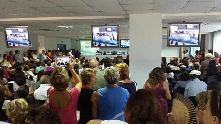 Presenti tutte le sigle sindacali maggiormente rappresentative, FLC CGIL, CiSl, UIL, SNALS, GILDA, che hanno organizzato l’evento cui hanno aderito ben 5 mila docenti. L’affluenza é stata altissima, la sala non era sufficiente a contenere tutti e una buona parte degli insegnanti ha seguito lo svolgimento dell’assemblea da alcuni schermi Giganti collocati in fondo alla sala.