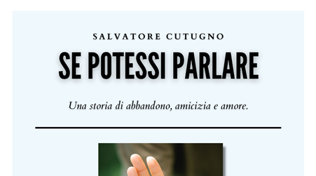 “Se potessi parlare” è il secondo romanzo di Salvatore Cutugno, questa volta firmato BookRoad, una casa editrice che propone al pubblico romanzi da sostenere tramite la prenotazione di copie. Si tratta di una campagna vera e propria per valorizzare i migliori talenti letterari e il libro di Cutugno sembra avere tutte le qualità per divenire un best seller!