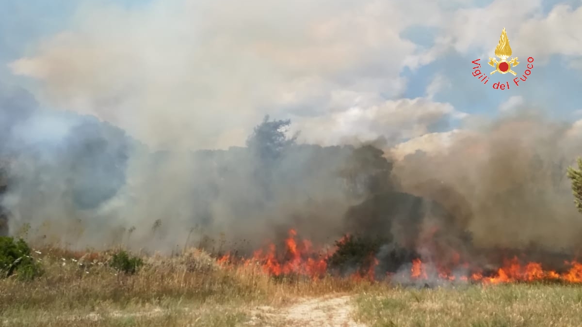 Le fiamme hanno interessato circa 10 He tra uliveti, incolto e pineta.