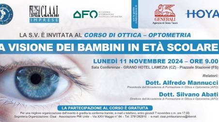L’incontro terrà, Lunedì 11 novembre 2024, con inizio dei lavori ore 9.00 a Lamezia Terme (CZ) presso il GRAND HOTEL LAMEZIA, sito in Via Piazzale Stazione – (FS) un seminario formativo, sul tema; “LA VISIONE DEI BAMBINI IN ETA’ SCOLARE”. vuole porre l’accento su una nuova cultura che deve coinvolgere: Oculisti, Ortottisti e Ottici-Optometristi e i genitori di bambini stessi. Crediamo che un genitore attento, prima di ogni altro, dovrebbe evidenziare eventuali “comportamenti visivi” non naturali e rivolgersi ai professionisti della visione.