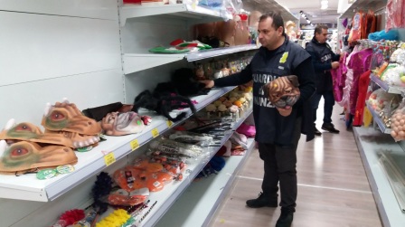 Tra i prodotti sequestrati vi sono anche numerosi articoli di carnevale, elettrici ed elettronici non a norma, giocattoli privi di marcatura ovvero non conforme, senza istruzioni ed informazioni sulla sicurezza e correlate avvertenze in lingua italiana, sull’uso e sull’età minima degli utilizzatori, sulla eventuale nocività del prodotto e sui materiali utilizzati per il loro confezionamento, nonché articoli destinati all’uso scolastico e cosmetici privi delle normali informazioni sul contenuto e sulla sicurezza.