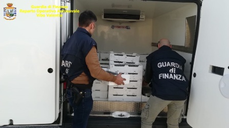 I finanzieri della Sezione Operativa Navale di Crotone, dipendente dalla Stazione Navale della Guardia di Finanza di Vibo Valentia, durante un servizio di pattugliamento con autovettura lungo le rotabili costiere per prevenire e reprimere attività illecite, insospettiti dalla presenza di un furgone frigo fermo, in prossimità dell’incrocio stradale tra la SS.106 e la SS.107bis, sono intervenuti, constatando che il mezzo isotermico era carico di prodotto ittico.