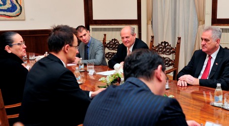 Tomislav Nikolic e il Ministro degli esteri ungherese Peter Siarto. I 2 hanno parlato