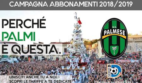 PALMI – L’ufficio stampa della U.S. Palmese 1912 (Comunicato Ufficiale 17/2018 pubblicato sulla propria pagina ufficiale nella giornata di oggi, mercoledi 8 Agosto 2018), ha comunicato l’apertura della campagna abbonamenti per la prossima stagione calcistica 2018/2019, Campionato Nazionale di Serie D, a cui per il quarto anno quarto consecutivo parteciperà la ultracentenaria Palmese. “Perché Palmi è questa”. Questo lo slogan lanciato dalla Società neroverde per la prossima campagna abbonamenti 2018/2019 che punta a valorizzare il forte spirito identitario che lega il territorio alla realtà calcistica per le gare della U.S. Palmese 1912 in Serie D.