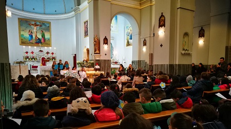 L’ingresso degli alunni in chiesa è stato emozionante: sulle note dell’Ave Maria, infatti, composti e visibilmente emozionati, tutti gli alunni, preceduti da tre bambini che rappresentavano i pastorelli di Fatima: Lucia, Francesco e Giacinta, hanno omaggiato la Madonnina offrendole un cuore di rose. Successivamente hanno rivolto alla Madonna delle preghiere per la dirigente, professoressa Sonia Barberi, per i loro insegnanti e per tutti gli operatori scolastici, per il parroco e per le loro famiglie e hanno eseguito con impegno e pieno coinvolgimento emotivo dei canti mariani. L’Arciprete li ha invitati a recitare un’Ave Maria per tutti i bambini poveri e malati e ha evidenziato l’importanza della preghiera , quindi si è complimentato per l’ordine e la bravura dimostrati e ha ribadito che la scuola primaria ”F. Sofia Alessio” è davvero “una scuola esemplare”.