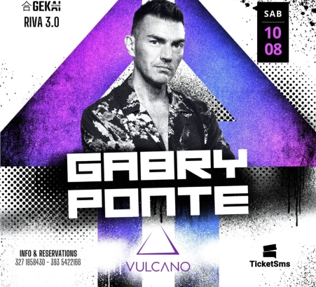 L’evento è fissato per sabato 10 agosto e il cartellone pubblicitario, animato da colori vivaci e design accattivante, conferma l’alto livello dell’intrattenimento previsto. La grafica moderna e il layout dinamico riflettono l’energia che Gabry Ponte porterà sul palco del Lido Vulcano.