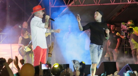 Fedez e J-Ax, poi, ci hanno messo il loro per conquistare, impresa facile, tutti i presenti infiammandoli fin dalle prime note: dopo aver ricevuto gli omaggi del Cavalluccio marino, simbolo della Città jonica, e il Pitagora d’argento di Michele Affidato, i due rapper si sono alternati sul palco, in oltre due ore di rime e ritmo, accompagnati oltre che dalle loro formazioni consuete, da Vivian Grillo – che pure ha cantato “Look at me now” -, e dalla crew band delle Teste dure di J-Ax.