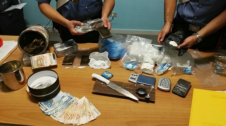 DIAMANTE – Nella giornata di ieri i Carabinieri della Stazione di Diamante, nell’ambito di un servizio finalizzato alla repressione dello spaccio di stupefacenti, hanno fatto irruzione in un’abitazione di un elettricista. L’attività di perquisizione ha permesso di rinvenire sin da subito una grossa somma di denaro contante, oltre 20 mila euro, in banconote di piccolo taglio. Proseguendo l’attività di polizia giudiziaria i militari dell’Arma hanno rinvenuto 130 grammi di marijuana occultata in un barattolo vuoto di proteine sintetiche e 18 panetti di hashish per un peso complessivo di circa 2 chilogrammi.