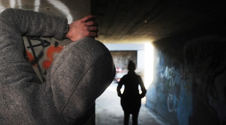 Cadempino: Stalking su una ragazza che passeggia in un sottopassaggio. Nella foto uno stalker la aspetta dietro a un angolo di un muro. © Ti-Press / Enea Ferrari