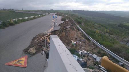 del tutto franata fino al compromettere totalmente una corsia, le