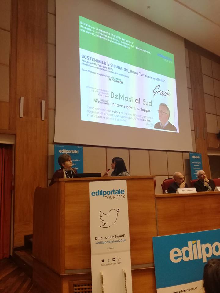 E’ cosi che l’8 marzo è stata l’occasione per anticipare uno dei progetti sperimentali che ha già raggiunti alti livelli di prototipazione dell’azienda di Antonino De Masi, il modulo abitativo S2_Home, doppia sicurezza, antisismica e ambientale, con la relazione della team manager del progetto Prof.ssa Arch. Consuelo Nava, che assiste l’azienda in questa impresa nelle attività di ricerca e sviluppo e su questa attività ha scelto di lavorare con docenti e ricercatori dell’Università di Trento, Enea Trisaia, con professionisti calabresi e con la start up innovativa PMopenLab. La relazione ha avuto un successo importante anche in questa occasione.