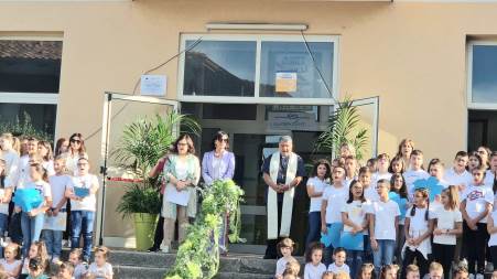 Don Cesare ha interagito con gli alunni e li ha invitati a riflettere sul valore della scuola, evidenziando che loro possono frequentarla serenamente, mentre ai bambini di tanti Paesi questa possibilità è preclusa per vari motivi. Dopo il rito solenne della benedizione il canto dei più piccoli “Sento la gioia” ha ampiamente evidenziato le emozioni vissute da tutti gli alunni , come sottolineano i versi “ perché so che nel mio cuore non esiste il rancore: prego per la pace e per l’amore” e il messaggio lanciato era evidente nei sorrisi di bambini e adulti, espressione della gioia che si prova quando si sta bene con sè stessi e con gli altri. Quando la scuola si caratterizza come agenzia educativa capace di creare condivisione con le famiglie e la Chiesa, finalizzando il suo intervento alla promozione di valori, allora ha veramente centrato il suo obiettivo, focalizzando la sua attenzione sul valore della “persona” portatrice di validi principi. I bambini, come ha evidenziato la dirigente, sono al centro del percorso educativo-didattico e la Scuola è al loro servizio perché, come diceva Mario Lodi,”dalla scuola passa il futuro”.