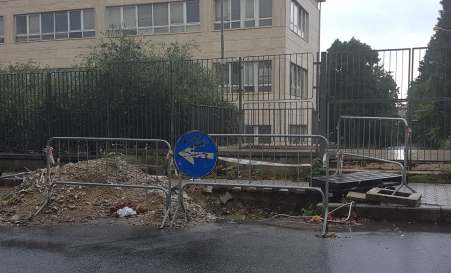Macerie, rifiuti e transenne inadeguate e posizionate alla meno peggio, è quello che ad oggi si vede all’inizio della centralissima via Francesco Sofia Alessio, dove abbandonato da circa 5 mesi, c’è il cantiere, aperto dall’Amministrazione comunale di Taurianova per un semplice lavoro di manutenzione (la sistemazione di una condotta dell’acqua). Un enorme buco, tra l’asfalto e il marciapiede, è ciò che si presenta agli occhi non solo dei cittadini, ma anche di tutti coloro i quali, ogni giorno, in qualsiasi orario, si trovano a percorrere quella strada, che è anche una delle arterie principali di collegamento della cittadina con gli altri paesi limitrofi. Una strada non solo trafficata giorno e notte, ma dove in quel preciso punto interessato dai lavori, si affacciano ben tre istituti scolastici: la scuola media “Contestabile, l’Istituto d’istruzione superiore “Gemelli Careri” e l’Istituto professionale per l’agricoltura e l’ambiente.