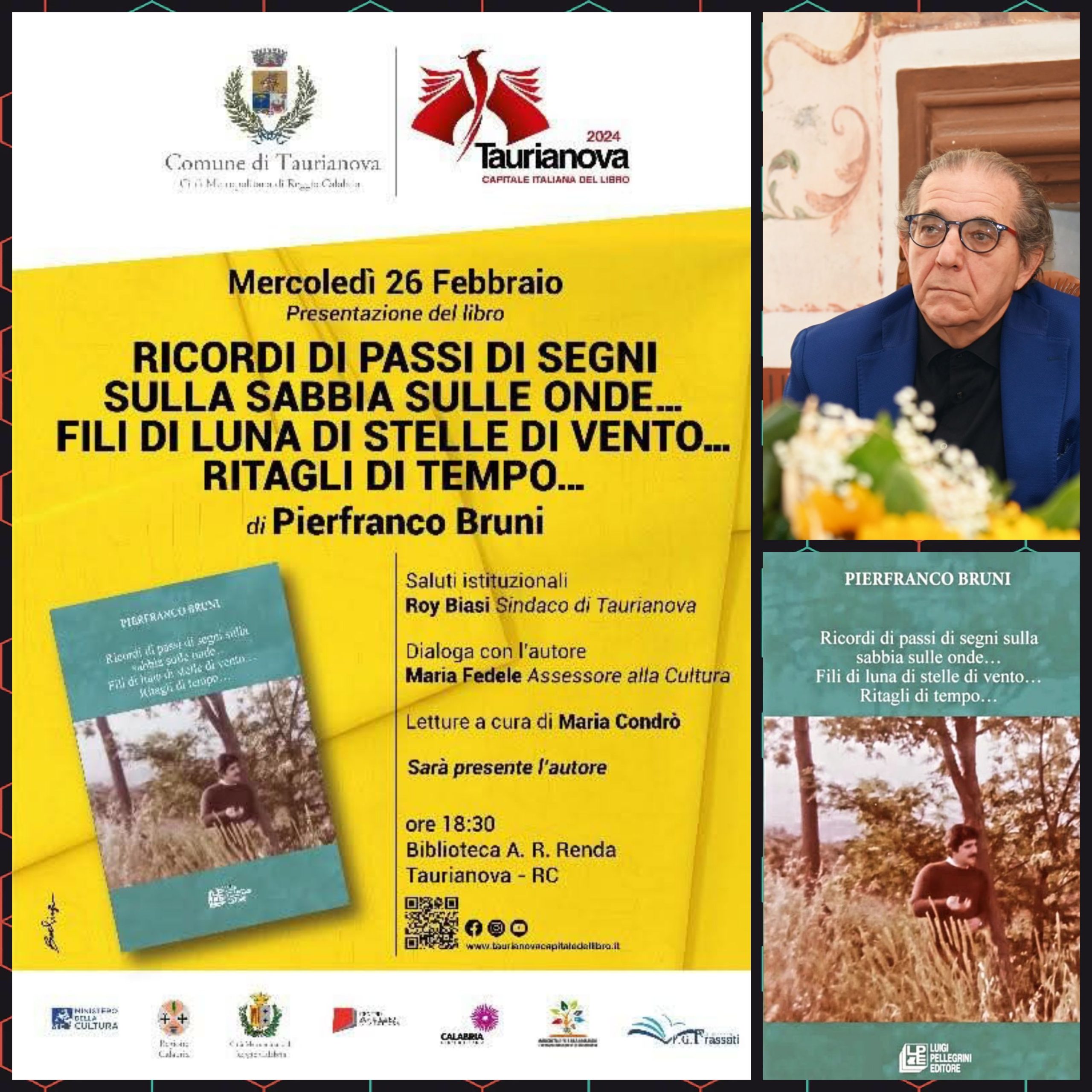 Un libro molto suggestivo. A 50 anni dalla prima pubblicazione Pierfranco Bruni ripubblica il suo “Ritagli di tempo… Ricordi di passi…”. Lo stesso editore di cinquant’anni fa. Il primo libro per testimoniare che Pierfranco Bruni nasce come poeta e nasce nella poesia. Un bel omaggio fatto dall’editore Pellegrini. Ieri il padre Luigi.