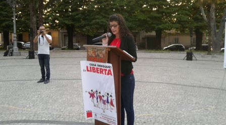 Ancora una mobilitazione contro la violenza di genere e per accendere i riflettori sulla condizione di subalternità, di discriminazione e di violenza che le donne subiscono nel nostro Paese. La Segretaria Generale della Cgil di Gioia Tauro, Celeste LoGiacco, ha scelto l’anfiteatro della Villa Comunale di Taurianova come scenario per rappresentare una situazione drammatica nella quale,ogni anno,nel nostro Paese, cento donne vengono uccise brutalmente per mano di un uomo.