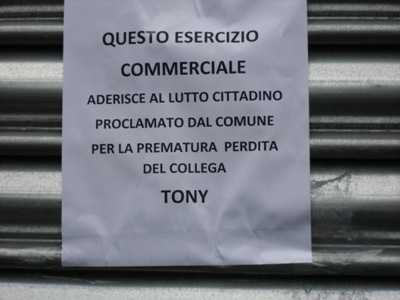 Tutti gli esercizi cittadini hanno aderito al lutto cittadino in onore di Tony Battaglia. Adesioni anche nei centri limitrofi
