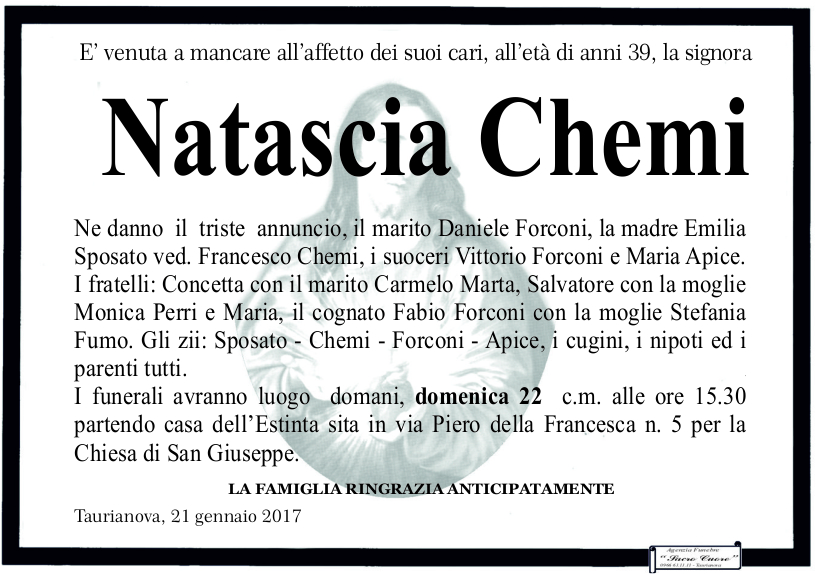 Taurianova, è morta Natascia Chemi