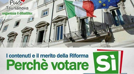 Perché votare Sì? I contenuti e il merito della riforma costituzionale che sarà sottoposta al voto referendario il prossimo 4 dicembre saranno al centro dell’incontro, nell’Ex Municipio di Radicena, domenica prossima, 13 novembre, nel corso di un dibattito moderato dal Sindaco di Taurianova Fabio Scionti e al quale parteciperanno il deputato PD Demetrio Battaglia e il sottosegretario di Stato alla Giustizia, Cosimo Ferri.