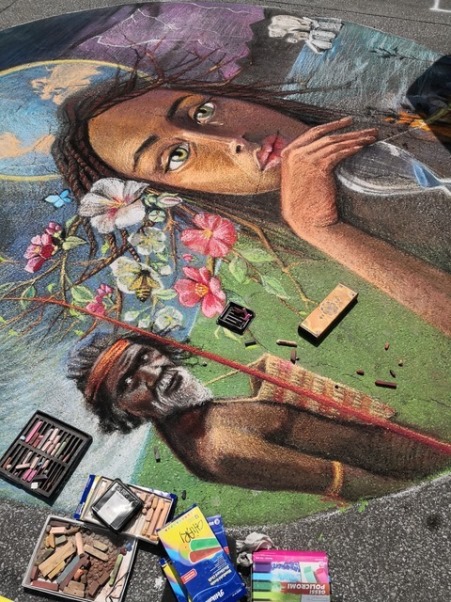 Tra i migliori artisti del gessetto provenienti da ogni parte del mondo è riuscita a prevalere, convincendo tutta la giuria tecnica, presieduta dal prof. Francesco Scialò, docente dell’Accademia di Belle Arti di Reggio Calabria, la milanese Luna Urzì (n.7) con l’opera “Gli ultimi sospiri di Madre terra”, che ha raccontato così: «Il tempo della terra sta per finire: alluvioni, incendi, terremoti e scioglimento dei ghiacciai ne sono la dimostrazione. Dobbiamo salvaguardare le risorse della terra apprendendo da quelle popolazioni che hanno saputo vivere in armonia con essa senza distruggere il suo ecosistema. Impariamo da loro a dare il giusto valore alle cose. La speranza sta nelle nuove generazioni, Greta Toomberg cerca di girare la clessidra per poter allungare il tempo a nostra disposizione».