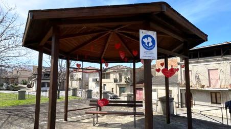 Un’area verde dove insiste anche un campo di bocce e dove adesso sorge una panchina che fa da corollario a un angolo di sentimenti rappresentato da tanti cuori con delle frasi di canzoni realizzate anch’esse dalla bravura delle ragazze che hanno impresso in un cielo colorato, rappresentando quello che de Maupassant definì “immortale”, il bacio.