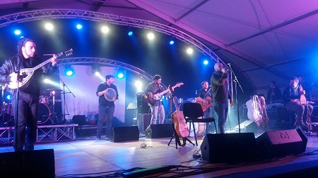 Non poteva poi esserci migliore chiusura di serata dell’esibizione dei Parafonè, straordinari interpreti moderno della musica popolare. Rivisitare la musica popolare senza cadere in un logoro cliché rappresenta una sfida difficile per ogni musicista, specie se si vuole mantenere un approccio ai materiali integro e puro. L’impegno dei Parafoné è quello di riproporre la musica senza variarne l’essenza, utilizzando gli strumenti tramandati di padre in figlio come chitarra battente, zampogna, lira, organetto, tamburello, fischiotti eccetera: strumenti antichi che lasciano intravedere una straordinaria attualità soprattutto in una società che tende a smarrire le proprie identità culturali. Decidere di confrontarsi con le tematiche popolari rappresenta dunque per i componenti dei Parafoné un’esigenza precisa che ha radici profonde nella cultura popolare calabrese, della quale si sentono figli e naturale espressione come singoli e come gruppo. Questo confronto avviene in modo solare e leggero nella riproposizione, con arrangiamenti originali e coerenti, degli antichi temi e canti della tradizione orale-musicale della Calabria. La band: Bruno Tassone (Voce, chitarra battente, zampogna a chiave); Angelo Pisani (Lira calabrese, pipita, fischiotti, sax soprano, marranzano); Gianluca Chiera (Cori, bouzouki); Domenico Tino (Chitarra acustica, chitarra elettrica, cori); Antonio Codispoti (Organetto diatonico, tamburello, cori); Omar Remi (basso elettrico); Fabio Tropea (Percussioni, darabouka, tamburi a cornice).