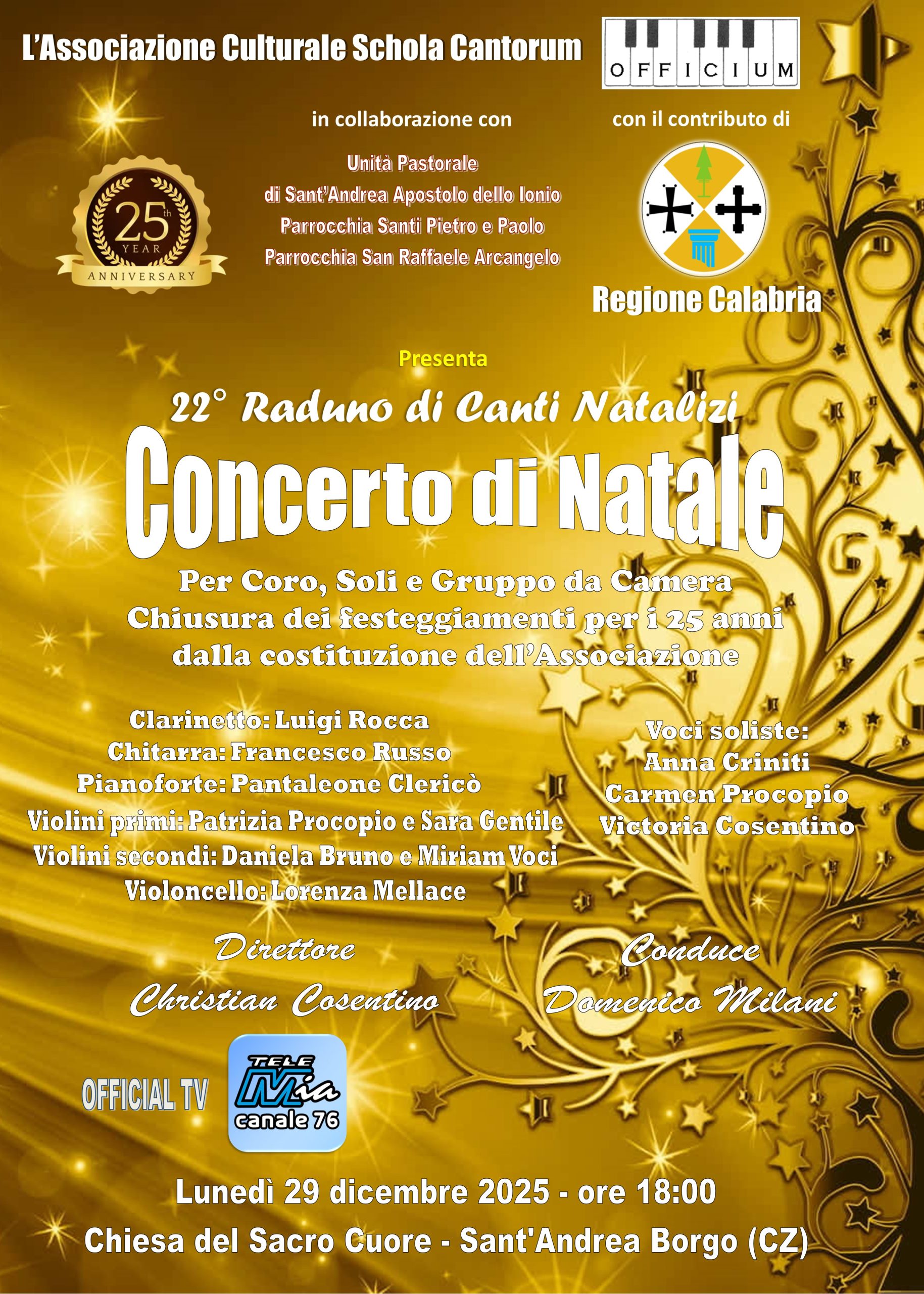 Torna a Sant’Andrea Jonio uno degli appuntamenti più attesi del periodo natalizio: il XXII Raduno di Canti Natalizi, tradizionale Concerto di Natale organizzato dall’Associazione Culturale Schola Cantorum Officium, in programma lunedì 29 dicembre 2025, alle ore 18.00, presso la suggestiva Chiesa del Sacro Cuore, nel borgo storico del paese.