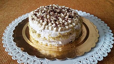 La torta al pistacchio è un esperimento che ha riscosso molto successo. Chi mi conosce sa che al dolce preferisco il salato ma alla torta al pistacchio non si può proprio resistere. La ricetta del pan di spagna è quella base, la bagna l’ho aromatizzata al brandy e la farcia ovviamente è una crema al pistacchio davvero golosa. Per decorare ho montato la panna e ho prepataro una chantilly al pistacchio. Per spolverizzare ho utilizzato scaglie di cioccolato al pistacchio e farina di pistacchio.