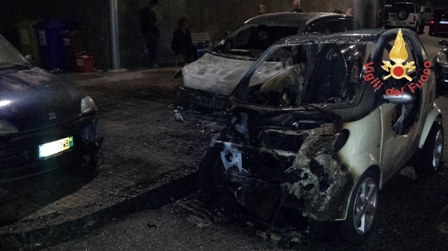 Tre auto incendiate nella notte: intervento Vigili del Fuoco