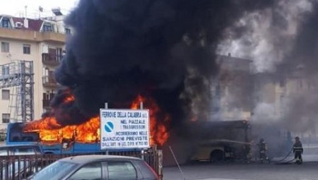Un incendio di vaste proporzioni ha provocato paura, nella tarda mattinata di oggi, a Soverato, nella zona dell’autostazione di via Trento e Trieste. Per cause in corso di accertamento, le fiamme hanno completamente distrutto due autobus e hanno danneggiato un terzo bus nella parte posteriore. Tutti gli automezzi sono di proprietà delle Ferrovie della Calabria. Sul posto squadre dei Vigili del Fuoco del distaccamento di Soverato, Chiaravalle Centrale e una autobotte della sede centrale. Nessuna persona è rimasta ferita, mentre sono in corso accertamenti sulle cause del rogo. I Carabinieri sono intervenuti per avviare le indagini sull’accaduto.