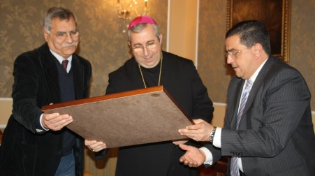 Il Primo Cittadino era accompagnato dal vicesindaco Francesco Paolo ORANGES, dall’assessore alla cultura Tommaso MINGRONE, dalla segretaria Vittoria MOTTA, dal comandante della Polizia Municipale Luigi GRECO con gli agenti Natale FORCINITI e Anna CASCIARO e dal Presidente del Consiglio comunale Pasquale MAGNO. Un quadro raffigurante il centro storico della Città di Corigliano è il dono fatto al VESCOVO.