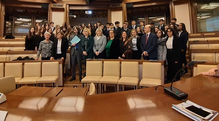 All’incontro hanno preso parte il Dirigente Scolastico Mariarosaria Russo, la Vice Preside Francesca Corso, la Professoressa Eleonora Contartese che ha coordinato il progetto e le professoresse Saveria Violi e Caterina Fassari componenti il team, con gli studenti, che hanno redatto e presentato un disegno di legge “Disposizioni in materia di apologia mafiosa”. Un confronto di grande interesse si è svolto presso l’Aula della IV Commissione, dove i ragazzi del Piria sono stati introdotti all’attività legislativa e all’iter che seguono i disegni di legge presentati al Parlamento. Il disegno di legge degli studenti, come riportato nella relazione, “ha la specifica finalità di abbattere i falsi miti della mafia e di ritenere reato l’apologia della mafia e di diffondere una nuova cultura di trasparenza delle coscienze e degli open data della pubblica amministrazione, per contrastare l’illegalità e la corruzione e pervenire al vero concetto di legalità”.