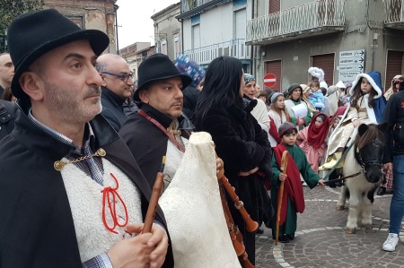 Piazza S.Stefano, via Umberto I, piazza S.Nicola e la villa comunale, sono state fedelmente trasformate in una piccola Betlemme con zampognari, bimbi vocianti, centurioni, pastori, le caratteristiche locande, le botteghe e le postazioni di lavoro presidiati da autentici artigiani (fabbri, falegnami, sarte ecc.). Particolarmente suggestiva è risultata la predisposizione della capanna dove, sotto l’abbondante caduta di neve artificiale, si sono ritrovati alla fine al seguito dei Re magi gran parte degli “attori” per “adorare” Gesù Bambino appena nato.