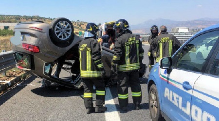 Vettura si ribalta su autostrada A2, ferite due persone