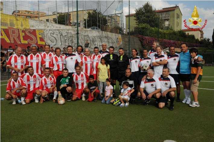 CATANZARO – Si è conclusa nel pomeriggio del 10 agosto a Catanzaro l’amichevole di calcio a 5, che ha visto la partecipazione de I Nomadi e la squadra dei Vigili del fuoco di Vibo Valentia. La gara è stata molto avvincente e, dopo un momentaneo vantaggio dei vibonesi, si è conclusa a favore dello storico gruppo musicale per 8 a 7. A far parte della squadra de I Nomadi c’era anche la gradita presenza di due giocatrici professioniste di origini calabresi, appartenenti al fan club del gruppo, che hanno mostrato abilità nel gioco del pallone notoriamente di appannaggio maschile. Al termine della partita I Nomadi hanno salutato e ringraziato i tanti fan che li hanno calorosamente accolti ed i vigili del fuoco rinviandoli ad un pareggio nell’estate 2012.