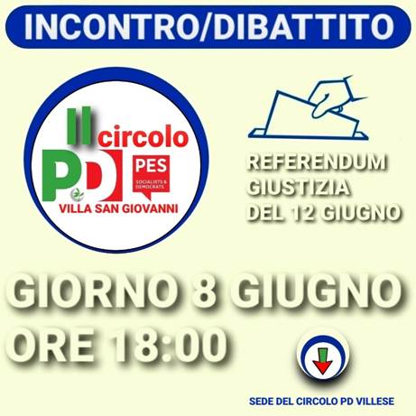 A tal fine il Circolo PD di Villa, in continuità con i suoi laboratori di approfondimento, ha previsto un incontro/dibattito di approfondimento, giorno 8 giugno, ore 18, sede del Circolo, accanto alla Casa Comunale villese.
