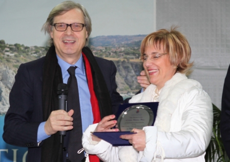 Vittorio Sgarbi presenta il suo nuovo libro a Ricadi e premia la pittrice Caterina Rizzo