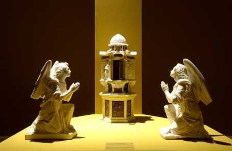 Il manufatto lapideo è composto da un ciborio e una coppia di angeli genuflessi che saranno collocati sull’altare del braccio sinistro del transetto.
