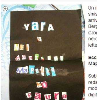 (ANSA) BERGAMO – Una lettera anonima contenente un messaggio su Yara Gambirasio è stata recapitata questa mattina alla redazione del quotidiano l’Eco di Bergamo. Il testo del messaggio, scritto su un cartoncino nero formato A4 con lettere ritagliate, recita testualmente: “Yara è nel cantiere di Mapello. Ho paura”. La lettera, indirizzata alla redazione cronaca del giornale, é stata subito consegnata alla polizia. Gli agenti della scientifica hanno provveduto anche alla rilevazione delle impronte digitali. Nulla si sa sulla provenienza della missiva. sulla busta c’era solo il timbro Milano Borromeo del 7 gennaio. Intanto anche oggi decine tra carabinieri, poliziotti, guardie forestali e volontari, sono al lavoro in provincia di Bergamo, per il 43/mo giorno consecutivo, alla ricerca di Yara Gambirasio, la 13enne scomparsa il 26 novembre da Brembate Sopra (Bergao). Questa mattina i militari, insieme ai volontari della protezione civile, sono tornati nella zona della ex colonia elioterapica di Brembate di Sopra dove stanno scandagliando il terreno con l’aiuto di un georadar. Il sofisticato macchinario, messo a disposizione dai carabinieri del Ros, consente di rilevare la presenza di eventuali anomalie fino a 12 metri di profondità, ma finora non sono stati trovati indizi riconducibili alla ragazzina. Altre squadre sono invece impegnate sul colle della Maresana, a Ponteranica, alle porte di Bergamo. Nei prossimi giorni è previsto un incontro in prefettura tra forze dell’ordine, volontari e il sindaco di Brembate di Sopra per fare il punto della situazione sulle ricerche che a ormai un mese e mezzo dalla scomparsa non hanno ancora dato frutti.